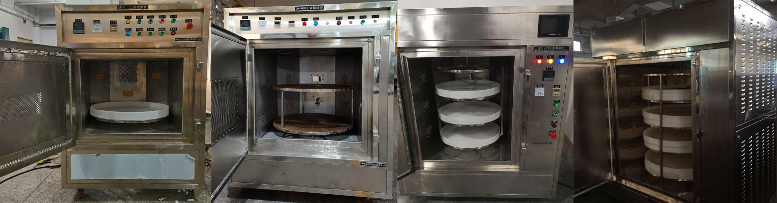 齊協(xié)微波公司生產(chǎn)的小作坊食品殺菌設(shè)備主要粉料食品、顆粒食品、小包裝食品、罐頭食品、袋裝食品、調(diào)味料、中藥材原料、農(nóng)產(chǎn)品等食品的微波殺菌。每個(gè)小時(shí)的產(chǎn)量30-100KG左右。有箱式單開門的微波殺菌機(jī),單開門雙層工業(yè)微波爐,單開門三層工業(yè)微波爐,單開門4層工業(yè)微波爐,單開門六層工業(yè)微波爐,還有雙開門的工業(yè)微波爐,雙開門的層數(shù)和單開門的都延時(shí)一樣。轉(zhuǎn)盤直徑650mm,不同的產(chǎn)品可以放的物料的重量都不一樣,一般是2-3KG一盤。比較輕的物料重量就不一樣了,物料的厚度20-30mm,罐頭和袋裝食品也是不一樣的厚度和重量。